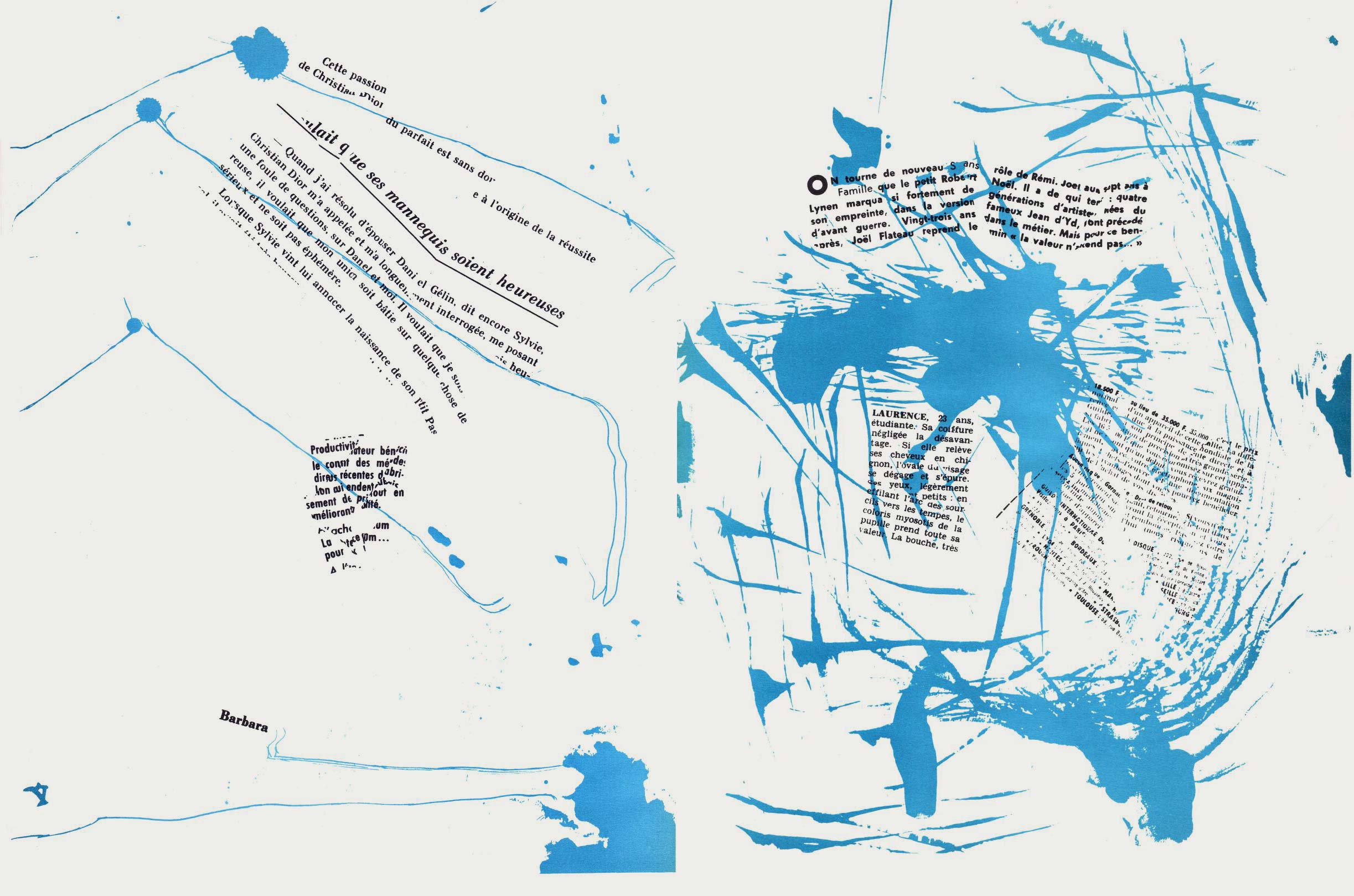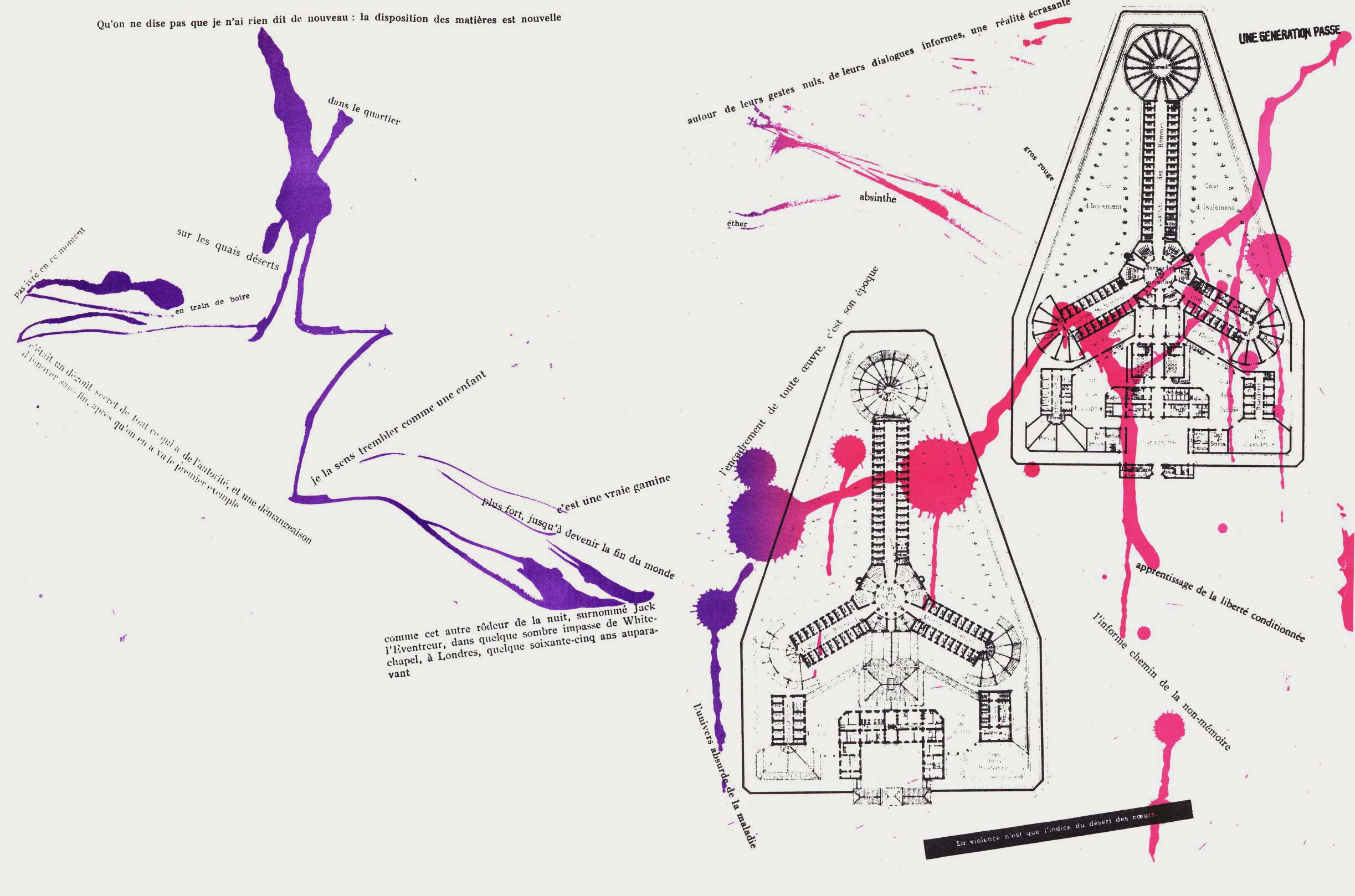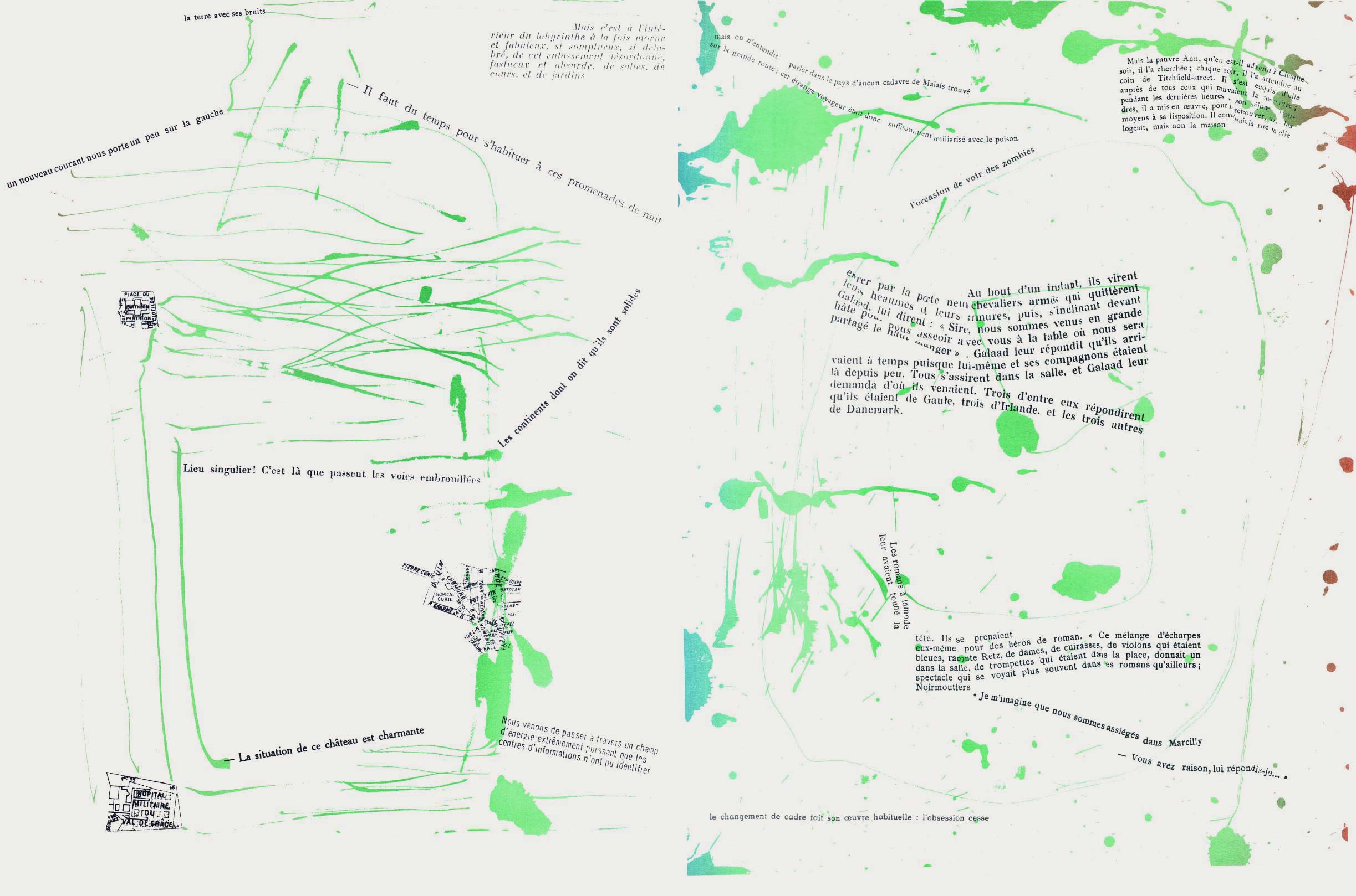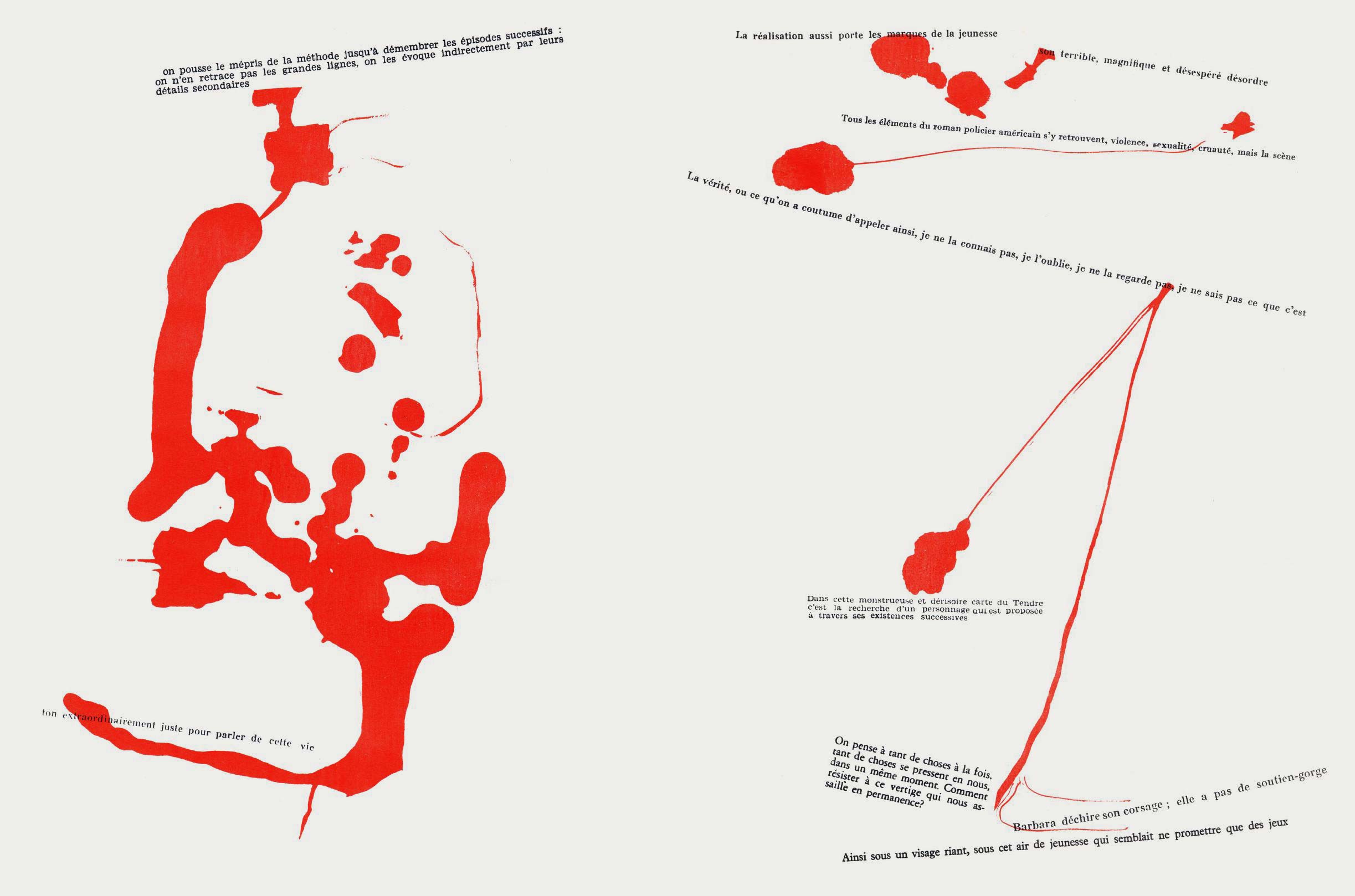 NOTES: Mémoires (Memories) is an artist's book made by the Danish artist Asger Jorn in collaboration with the French artist and theorist Guy Debord. The work contains two separate layers. The first is printed with black ink, reproducing found text and graphics taken from newspapers and magazines. The second layer is printed using coloured inks, splashed across the pages..