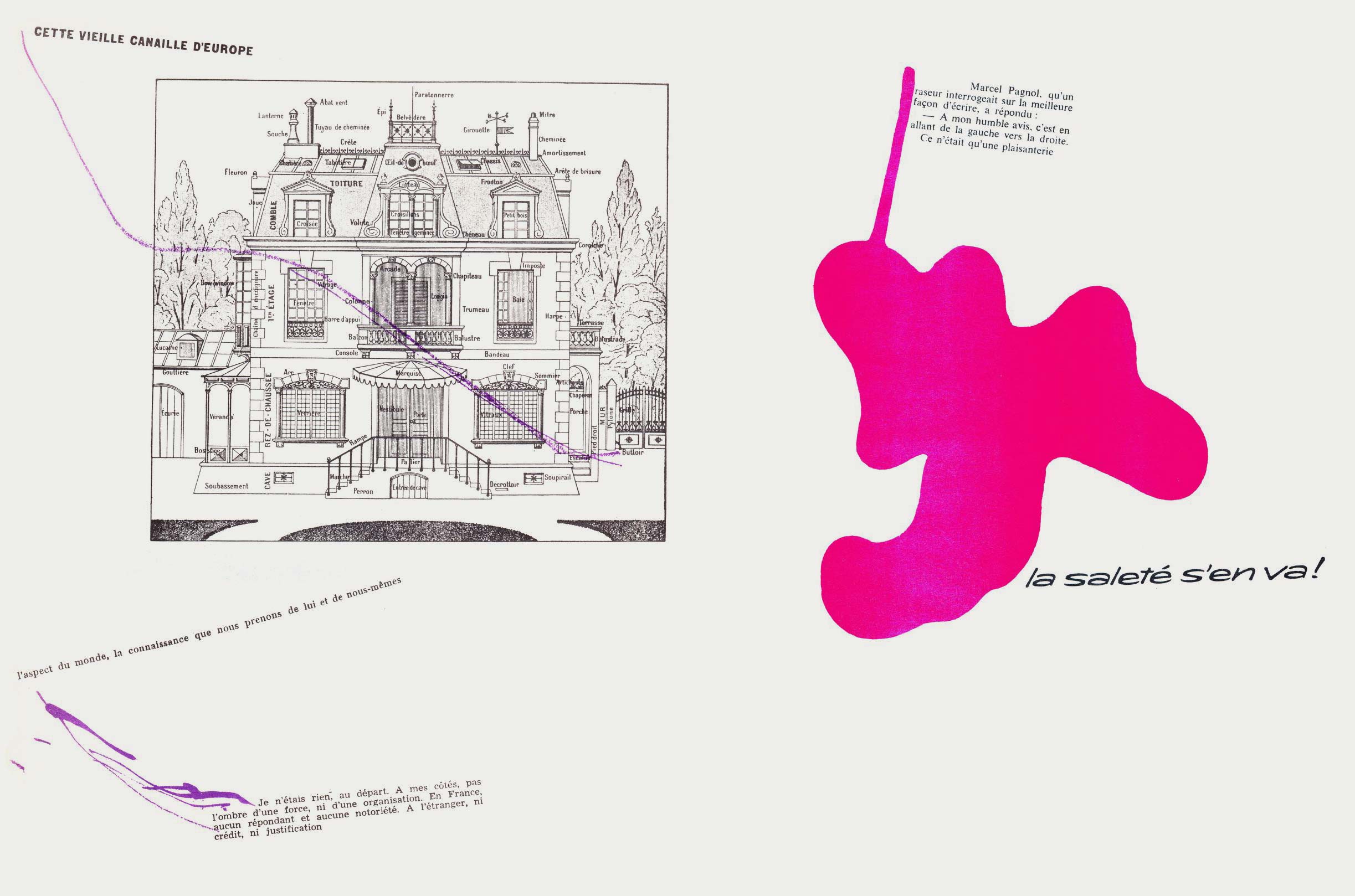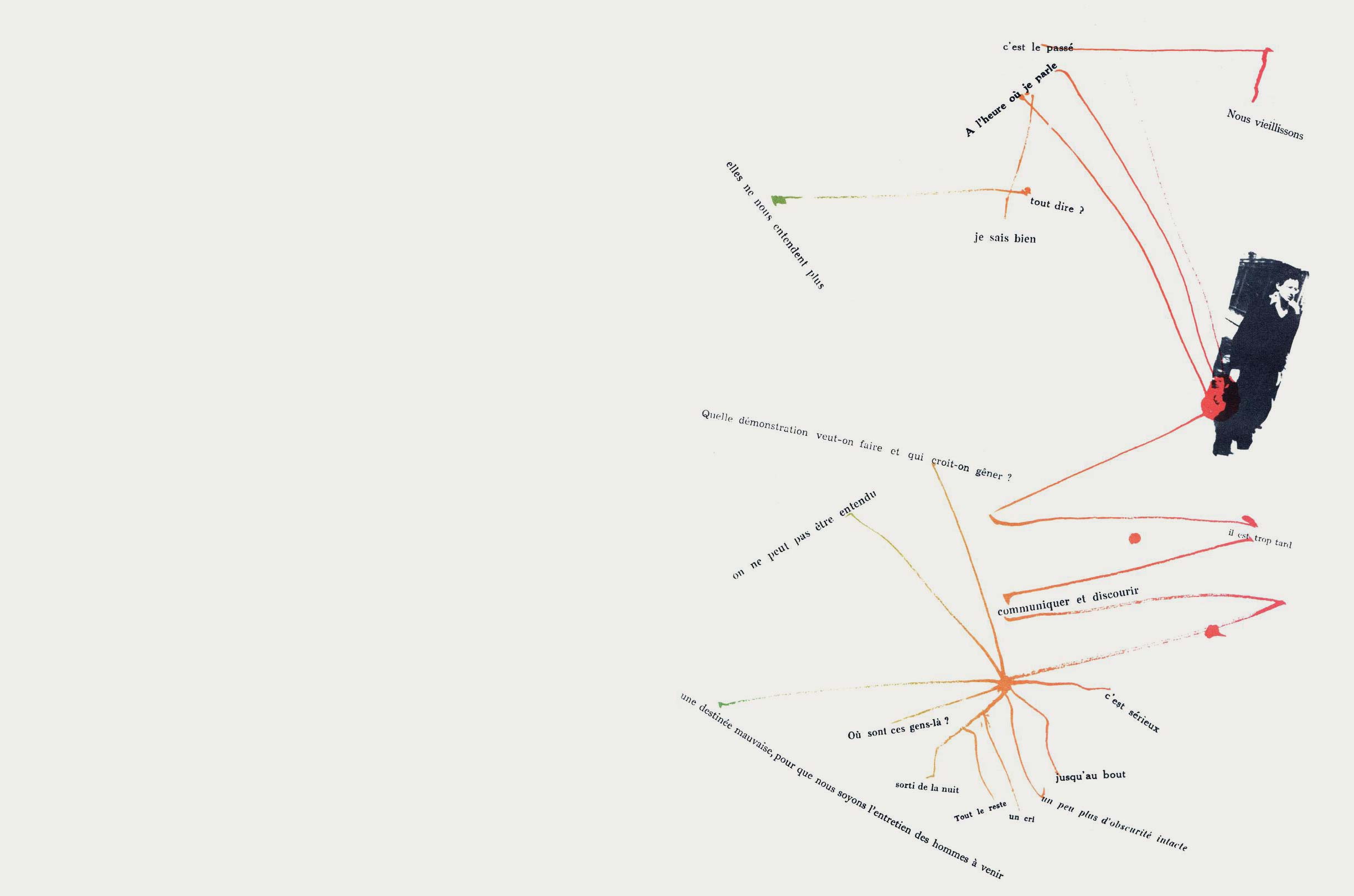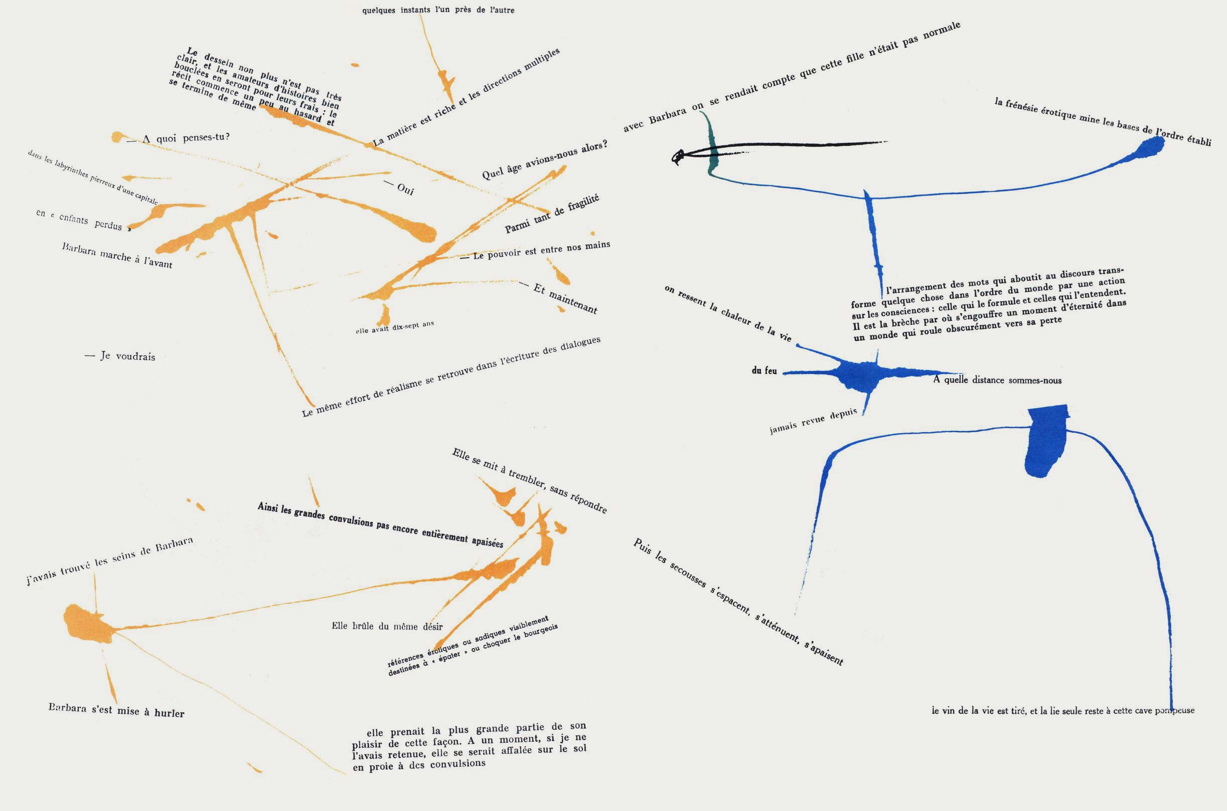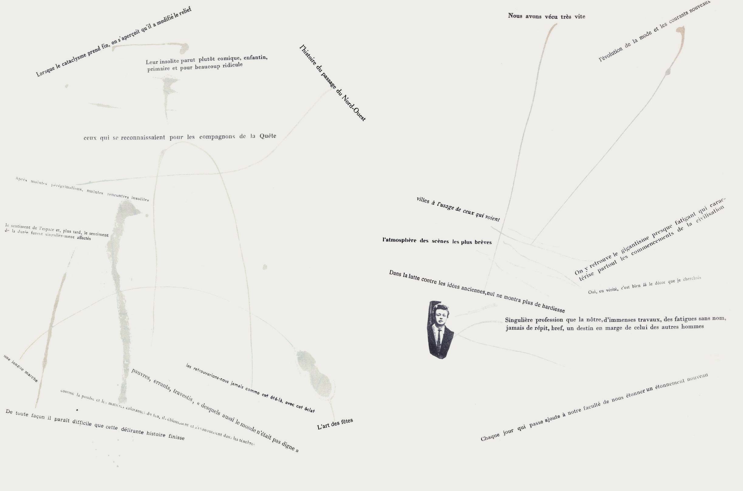 NOTES: Mémoires (Memories) is an artist's book made by the Danish artist Asger Jorn in collaboration with the French artist and theorist Guy Debord. The work contains two separate layers. The first is printed with black ink, reproducing found text and graphics taken from newspapers and magazines. The second layer is printed using coloured inks, splashed across the pages..